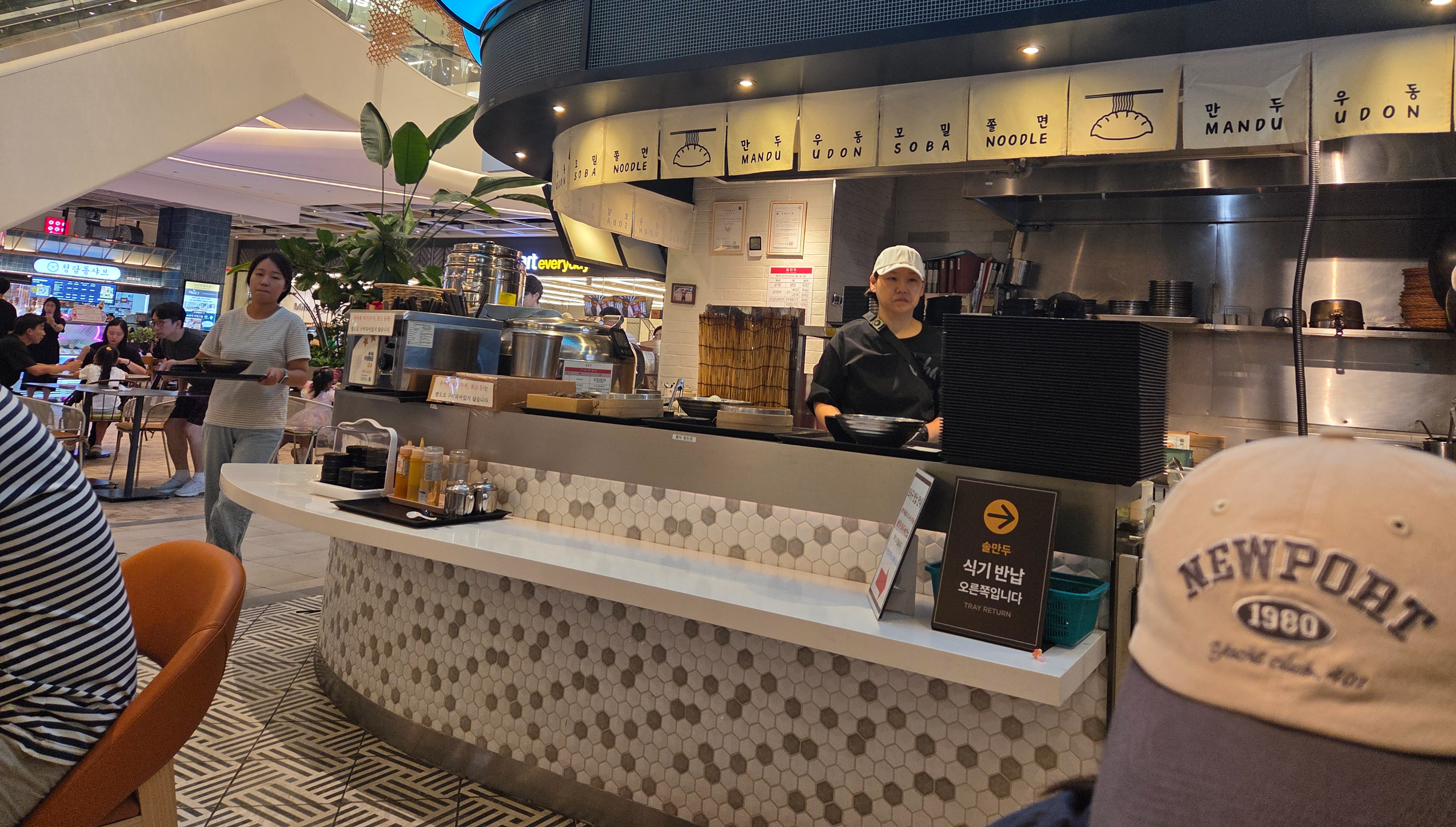 스타필드답게 자리도 넉넉하고, 바로 앞에 식수대·세면대가 준비돼 있어 키즈 동반 가족에게도 추천! 그리고 이곳은 다른 푸드코트처럼 공동 결제가 아니라 각 가게에서 개별 결제라서, 원하는 메뉴를 골라서 지불하면 끝! 정말 간편합니다.