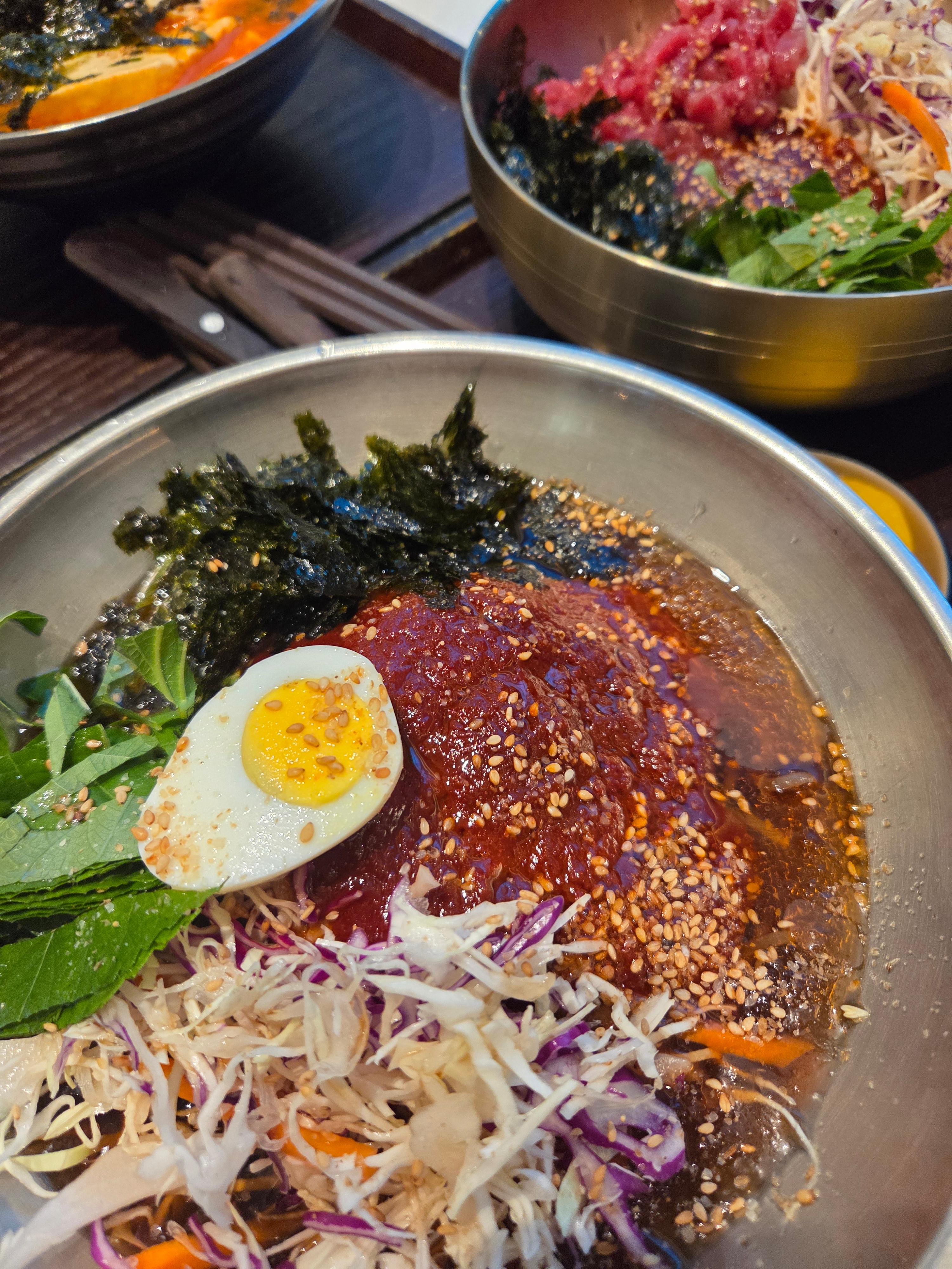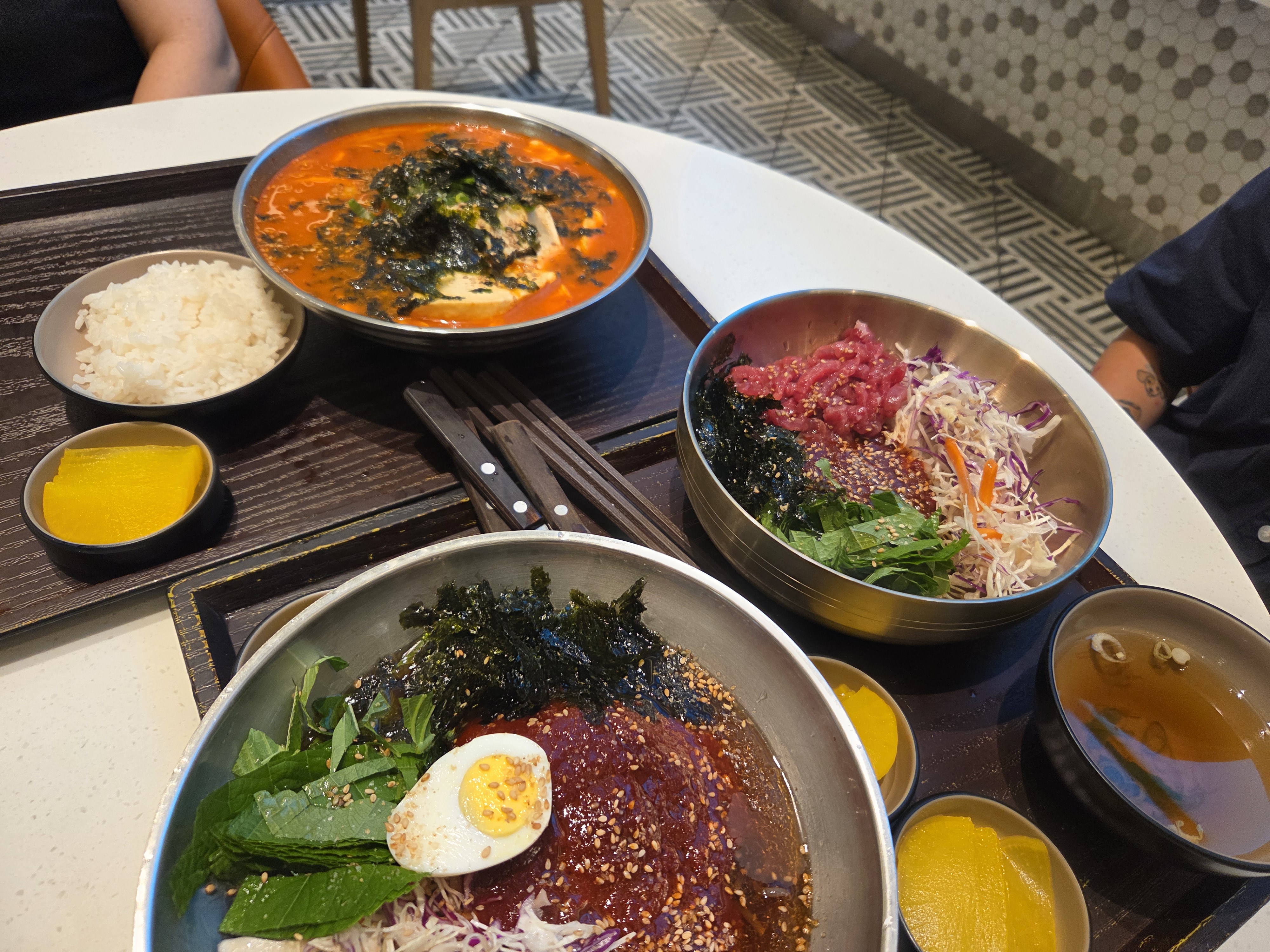 특히 세트 주문 시 모듬만두도 곁들여 나오니 다양하게 입맛을 즐길 수 있어요. 만두는 세트로 시키면 6개가 나오는데, 고기만두, 김치만두, 새우만두 2개씩 맛 볼 수 있도록 나와서 좋았습니다. 육회비빔밥도 육회가 잡내 없이 신선했고, 양념장은 감칠맛 넘치며 매콤달콤한게 자꾸 생각나는 맛! 순두부쫄면은 탱글탱글 쫄면 위에 부드러운 순두부가 얹어져 짭쪼름하면서 나면서 든든하고, 물비빔막국수도 가쓰오부시 육수 덕분에 감칠맛이 진짜 살아있어요. 여긴 조미료 맛이 아니라 재료 본연의 맛이 느껴져 엄마들도, 아이들도 안심하고 먹일 수 있을 것 같아요.
