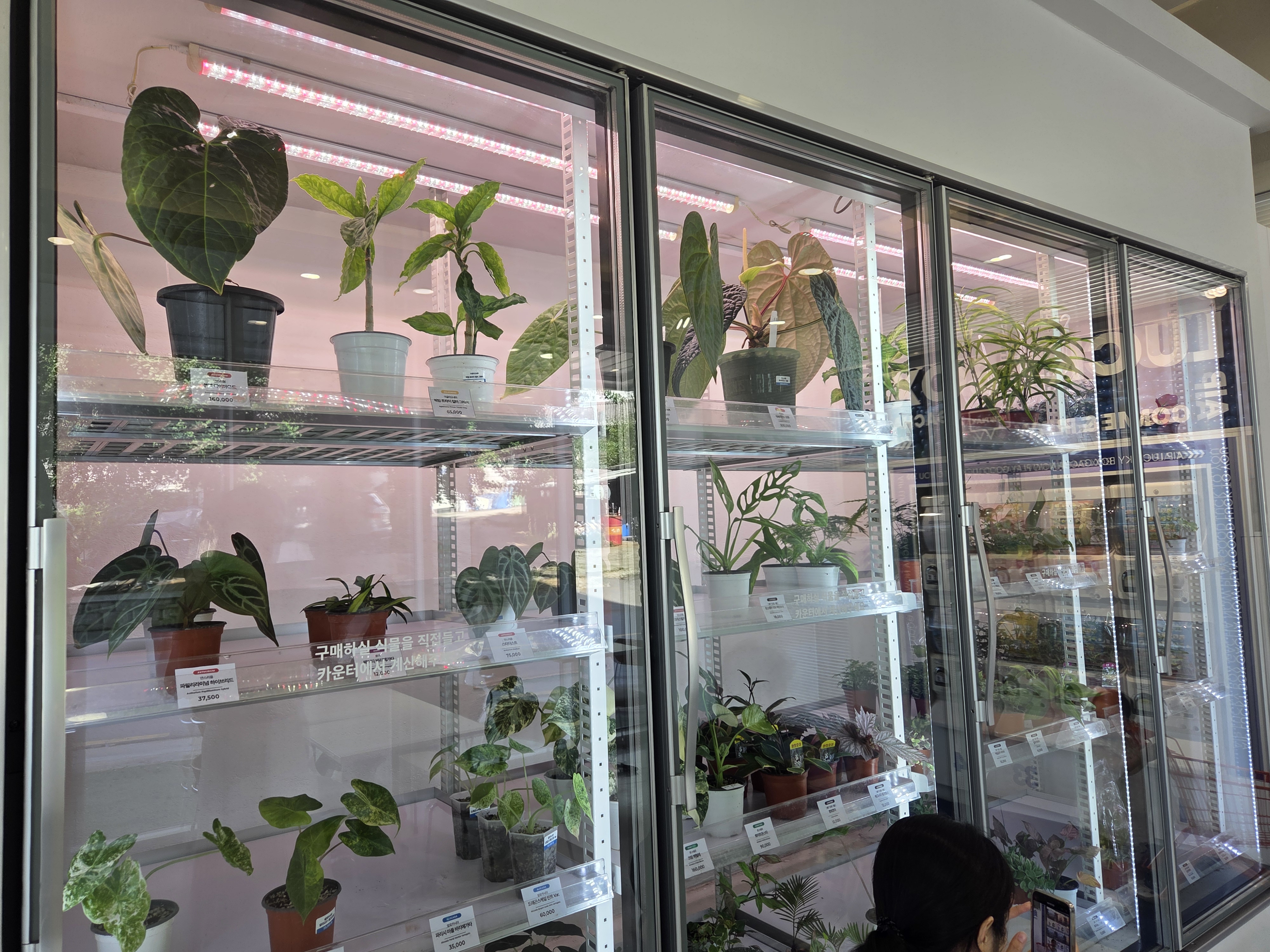 매장 깊숙이 들어가면 크고 작은 식물들이 가득한 공간이 펼쳐집니다. 전시된 식물들, 트렌디한 가챠샵 뽑기, 그리고 한쪽에는 예쁜 포토존까지! 식물을 좋아하는 분, 인생샷 남기고 싶은 분이라면 감탄할만한 구성이에요. 식물의 그린 톤의 싱그러움이 카페 전체에 가득해 힐링 그 자체였습니다.