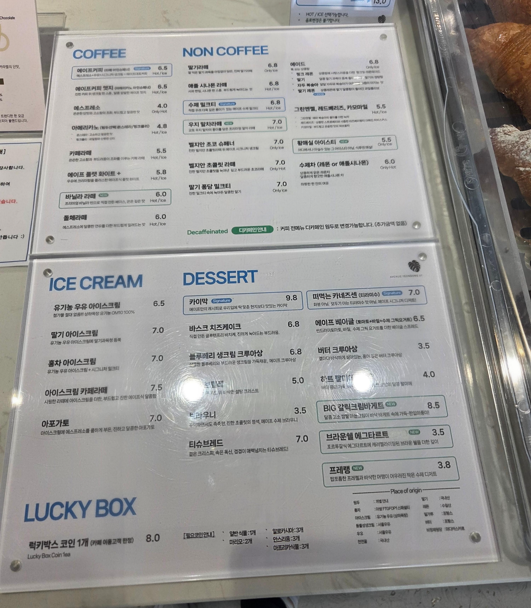 커피 메뉴는 원두 2종류(산미/고소한 맛) 중 고를 수 있다는 점이 매력적이에요. 저는 고소한 맛 아메리카노를 선택했는데, 달고나처럼 은은한 단맛과 부드러운 고소함이 정말 인상 깊었어요. 개인적으로 부천 옥길동 카페 중에서 아메리카노 고소한 맛 최강! 디저트 라인업도 남다르죠. 카이막(밀크크림), 티라미수를 화분에 담아낸 유니크한 케이크, 그리고 제가 맛 본 레몬 브륄레는 새콤달콤 부드러워서 한입 먹자마자 기분이 업! 확실히 옥길동 디저트 맛집이라 부를 만합니다.