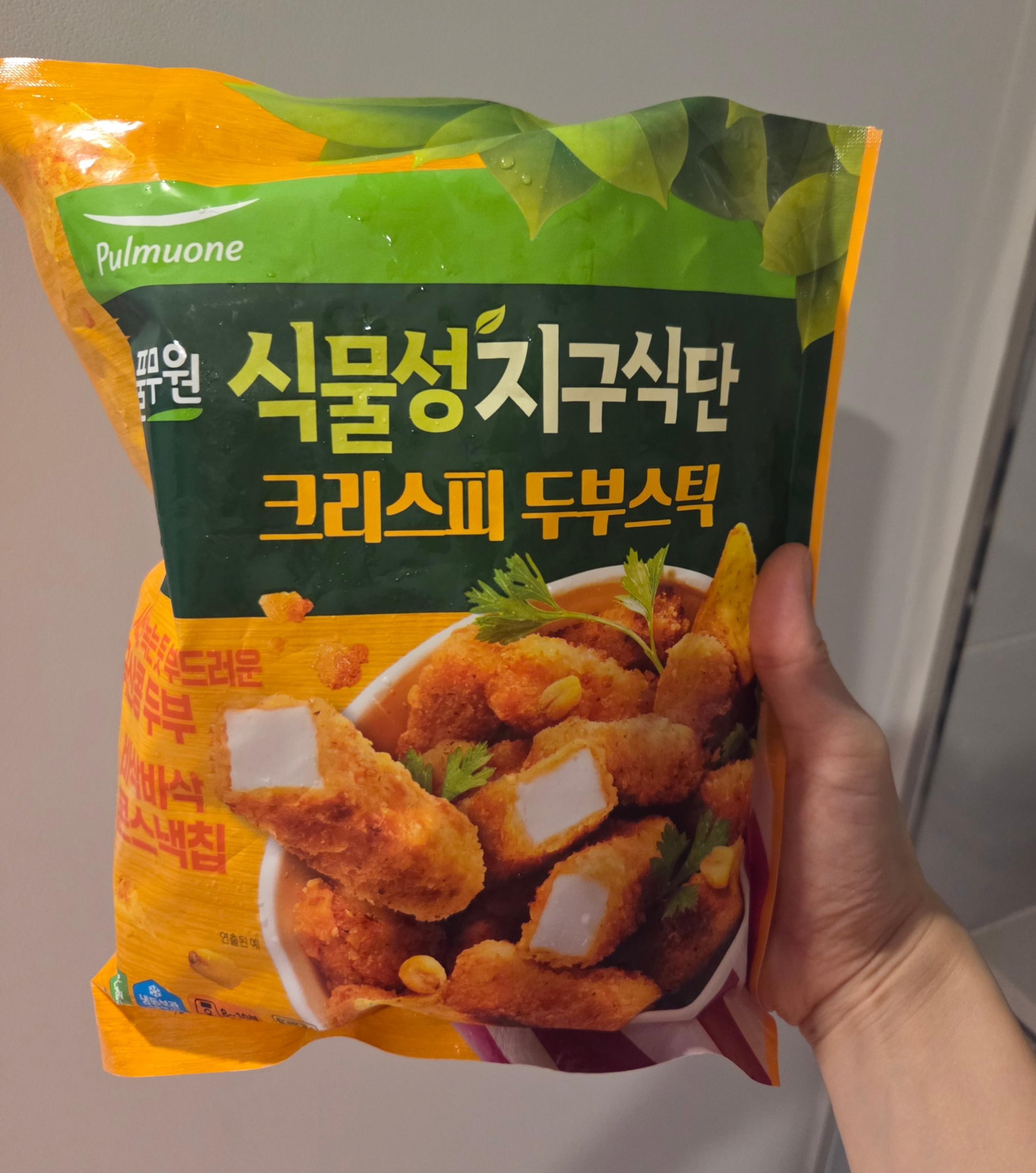 안녕하세요! 오늘은 이마트 냉동코너에서 만난 풀무원 식물성 지구식단 크리스피 두부스틱 솔직후기를 남겨볼게요. 평소 샐러드나 간단한 건강식, 다이어트식단에 단백질 토핑을 찾다가 두부스틱이 눈에 들어왔어요. 가격은 7,300원 정도로, 넉넉한 양에 비해 꽤 합리적이었어요. 포장지 뒷면 영양성분표를 살펴보니 칼로리는 100g당 230칼로리! 단백질 6g, 지방 14g, 탄수화물 19~21g이라 다이어트 간식 또는 운동 후 간단한 단백질 보충에도 딱이에요.