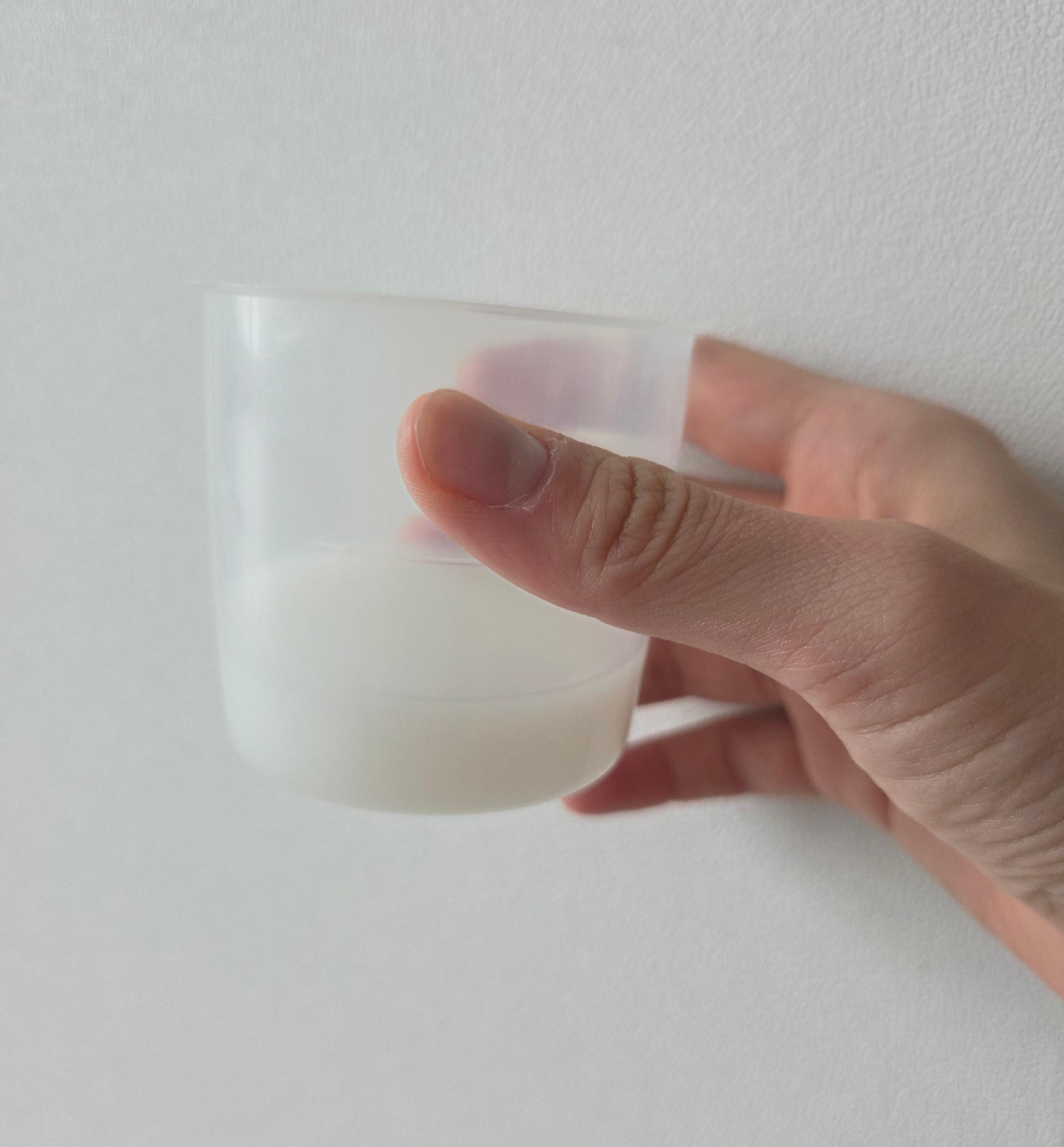 게다가 섬유유연제 특유의 하얀 불투명한 색상인데, 색소 같은 거 없이 깔끔해 보여서 더 믿음이 가요. 계량컵으로 재보니 적당한 빨랫감엔 30~45ml 정도 넣으면 딱입니다.