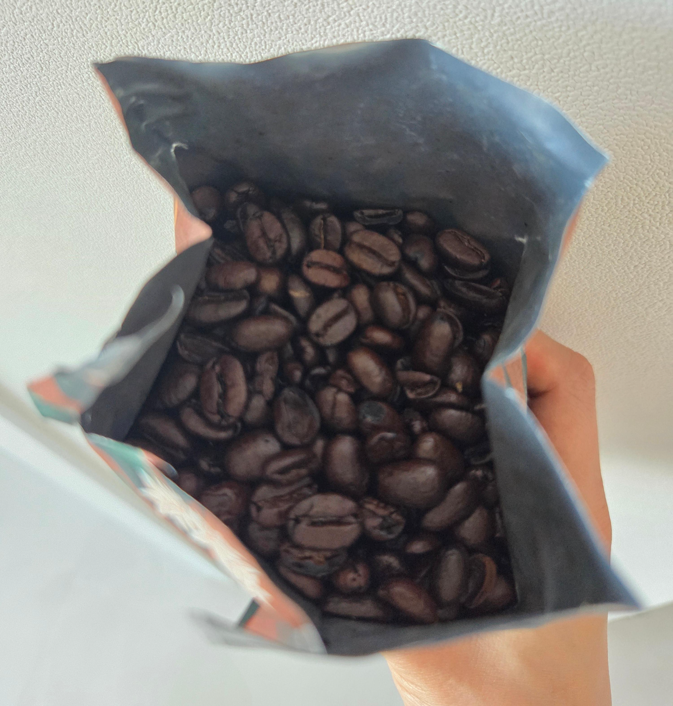 봉투를 열자마자 풍기는 진한 커피 향이 정말 인상적이었어요. 원두 색깔은 중간 정도 로스팅인데도 꽤 진해서, 강하게 볶아진 느낌이 확 들었습니다. 솔직히 미디엄로스팅이라는 설명에 무겁지 않은 맛일까 한참 고민했는데, 개봉하니 원두 색이 진하게 로스팅 되어서 미디엄 로스팅보다는 중강로스팅에 가깝다 싶었죠. 하지만 이렇게 진한 커피 향기가 집 안 가득 퍼지는 게 또 매력이죠!